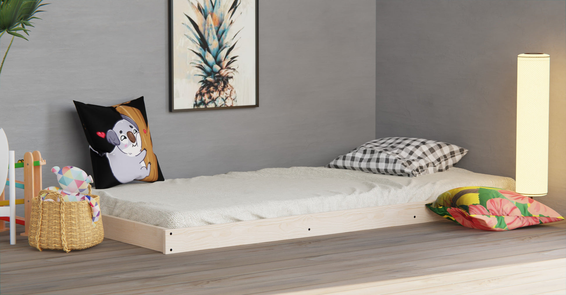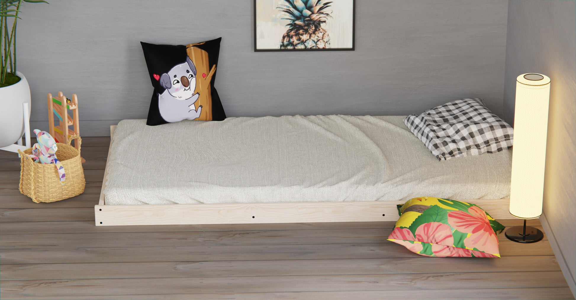The main ideas of this bed frame are to provide parents with affordable bed frames and give kids the opportunity to feel confident in independently getting in and out after transitioning from their cot.